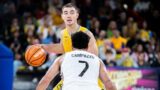 • Kassius Robertson lanza a canasta.
