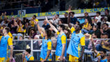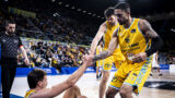 • El banquillo del Dreamland Gran Canaria celebra un triple.