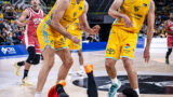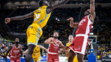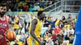 • Isaiah Wong, junto a Mike Tobey y Nico Brussino.
