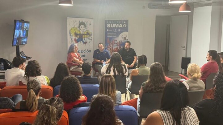 En esta ocasión, Javi Choren no acudió solo a la cita, sino que se presentó acompañado de un padre y una madre del Proyecto Suma. Lourdes Correa, madre de Eleazar, y Casto Serrano, padre de Álex, enriquecieron la ponencia que los trabajadores y trabajadoras, y los equipos de dirección de SATOCAN valoraron como “altamente inspiradora, emotiva y que invita a la reflexión”.