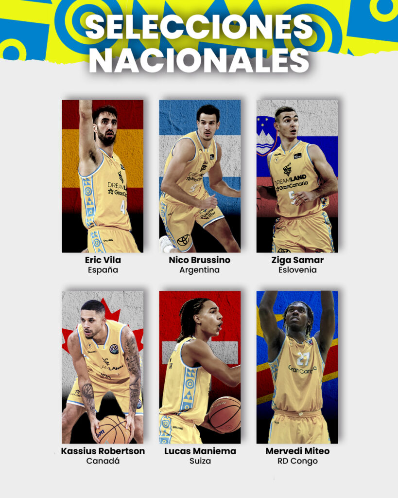 Semana de competición internacional para varios jugadores del Dreamland Gran Canaria. Hasta seis piezas del club insular harán las maletas para disputar, con sus selecciones, los próximos partidos internacionales. Nico Brussino, un habitual en las convocatorias de la albiceleste, disputará dos encuentros durante esta semana. Argentina se verá las caras, el sábado 28 a las 0:30, contra Uruguay, y el lunes 2 a las 21:30 contra Panamá. Ambos encuentros serán clasificatorios para el mundial. Por su parte, Eric Vila acudirá con la selección española para el doble compromiso ante la selección de Ucrania, el viernes 27 a la 13:00h y el lunes 2 de marzo a las 19:30h. Los partidos de la selección española también serán clasificatorios para el próximo mundial.